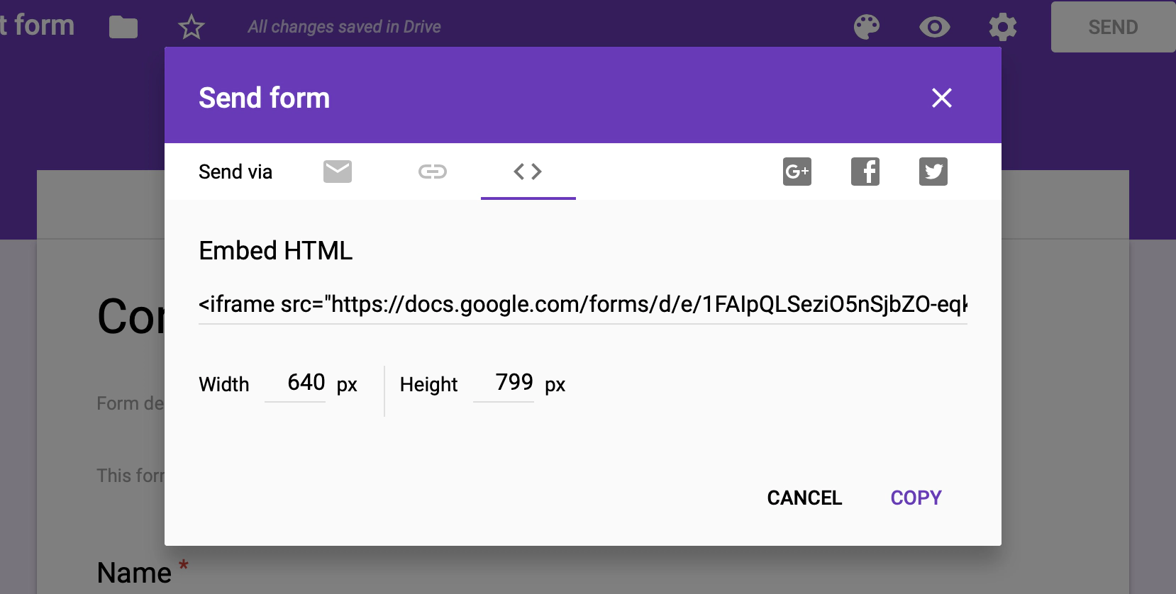 Once you’ve customised the form to work how you’d like, click on the send button.