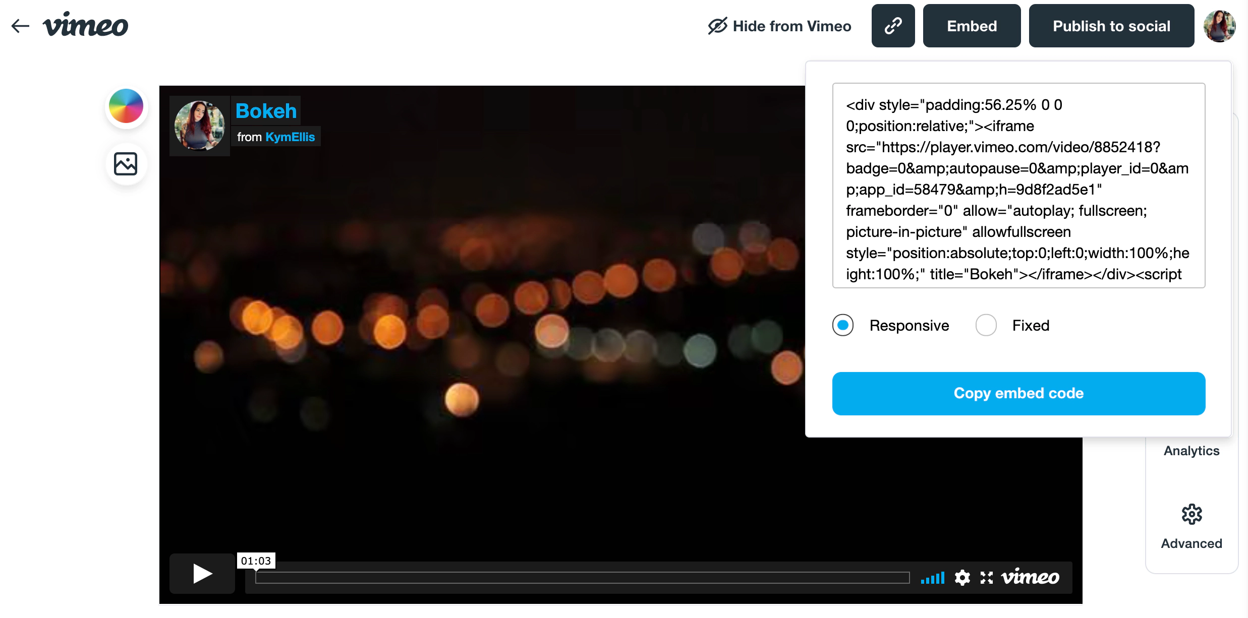 Now that your privacy settings are updated, grab the embed code for your video: